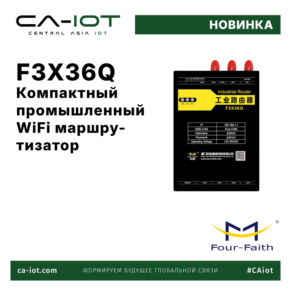 Компания Ca-IoT представляет F3X36Q — компактный и надёжный промышленный WiFi-маршрутизатор, разработанный компанией Four–Faith, ведущим брендом в сфере M2M и IoT-коммуникаций. Устройство сочетает в себе современные сетевые возможности и промышленное исполнение, идеально подходящее для автоматизации, умных производств, систем энергоменеджмента, охраны и других отраслей.